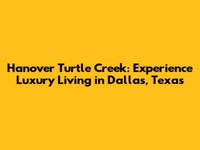 Hey everyone! Today, we're diving deep into the world of upscale living in Dallas, Texas, and specifically, we're talking about Hanover Turtle Creek. If you're searching for a place that screams luxury, offers top-notch amenities, and puts you right in the heart of the action, then Hanover Turtle Creek might just be the place for you, guys. We'll explore everything from the apartment features to the neighborhood vibes, giving you the inside scoop on what makes this Dallas gem so special. So, grab a coffee (or your drink of choice), and let's get started on this exciting journey! We'll cover everything from the basic info about the location to detailed reviews about the apartments, amenities, and more. This article aims to provide a comprehensive look at Hanover Turtle Creek, helping you decide if this is the perfect place to call home. Whether you're a young professional, a family, or anyone in between, understanding what Hanover Turtle Creek has to offer is essential.